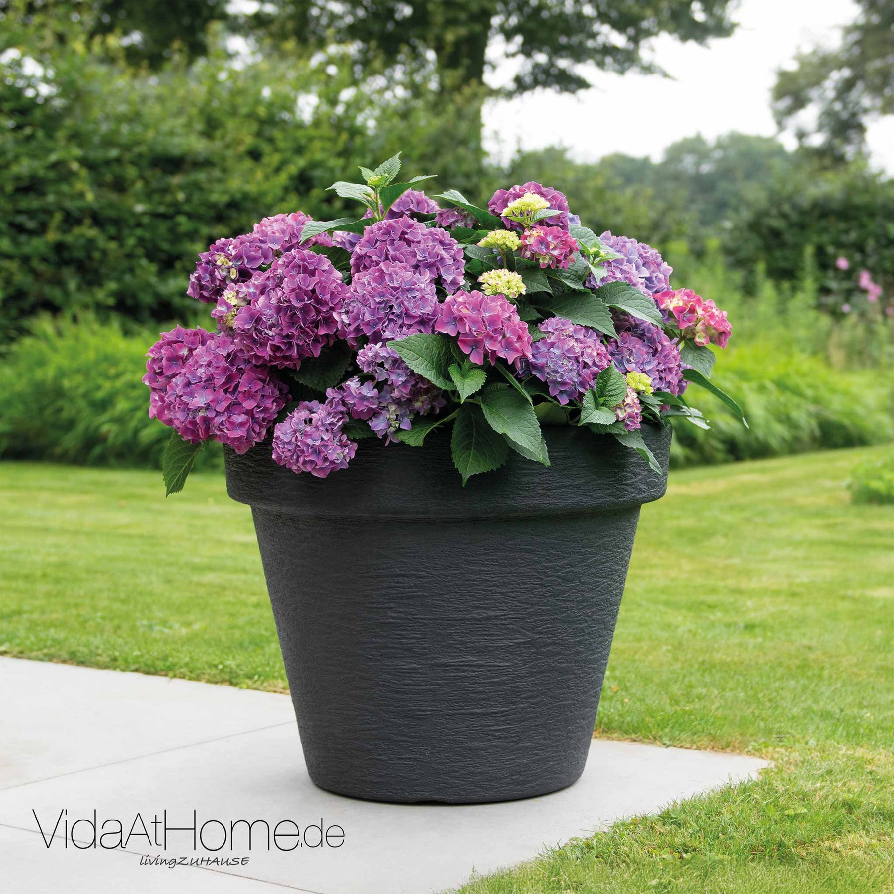 Mit seiner runden, klaren Form ist der Pflanztopf KLASSIK ein echter Allrounder. Er passt zu modernen Architekturkonzepten ebenso gut wie zu klassischen Hausfassaden. Egal ob Du mediterrane Olivenbäume, blühende Hortensien oder elegante Zimmerpflanzen einsetzen möchtest – der Topf verleiht jedem Gewächs den passenden Rahmen.