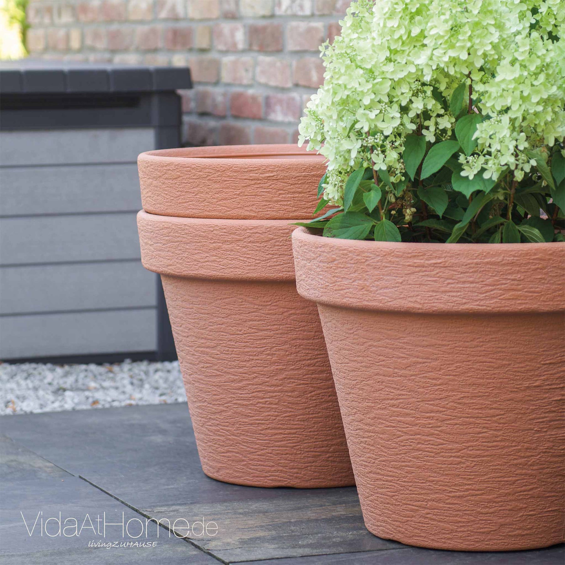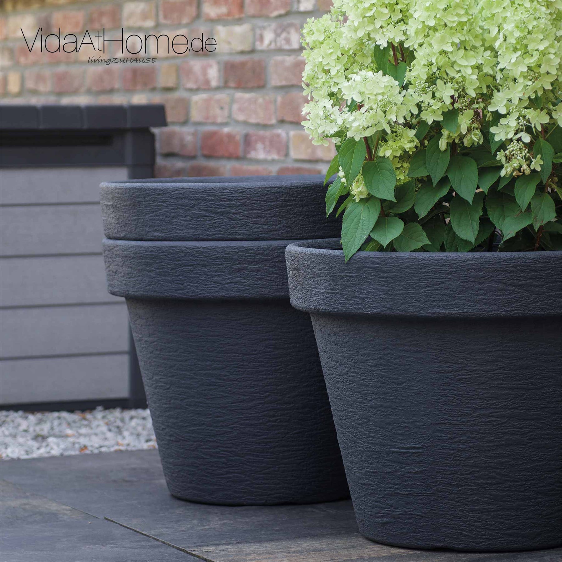 Mit drei Töpfen kannst Du unterschiedliche Pflanzenarten kombinieren, von dekorativen Ziergräsern bis zu blühenden Hortensien. Nutze das 3er-Set für ein stimmiges Gesamtbild oder setze jeden Topf als eigenen Akzent ein.